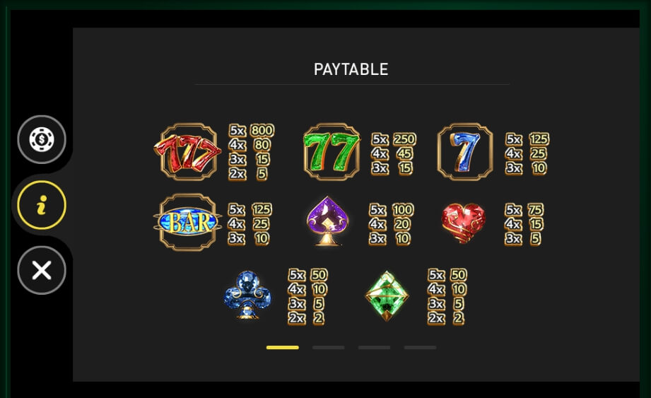 There are the following of them, as Bonus Game, Wild Symbol, Multiplier and, of course, Jackpot (800000). The wild is an icon of ‘777’, that has function of replacing other symbols in your combinations. It appears on 2, 3 or 4 reel.