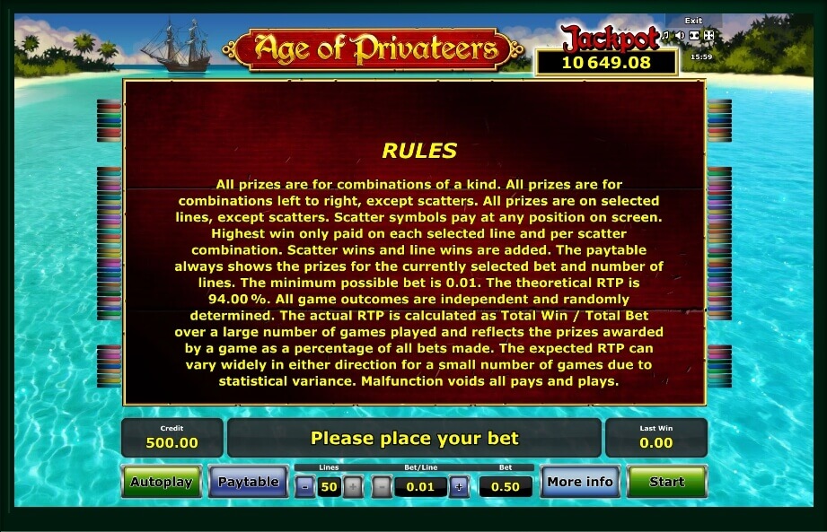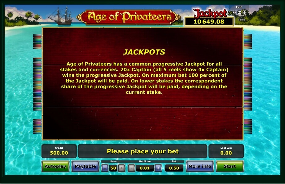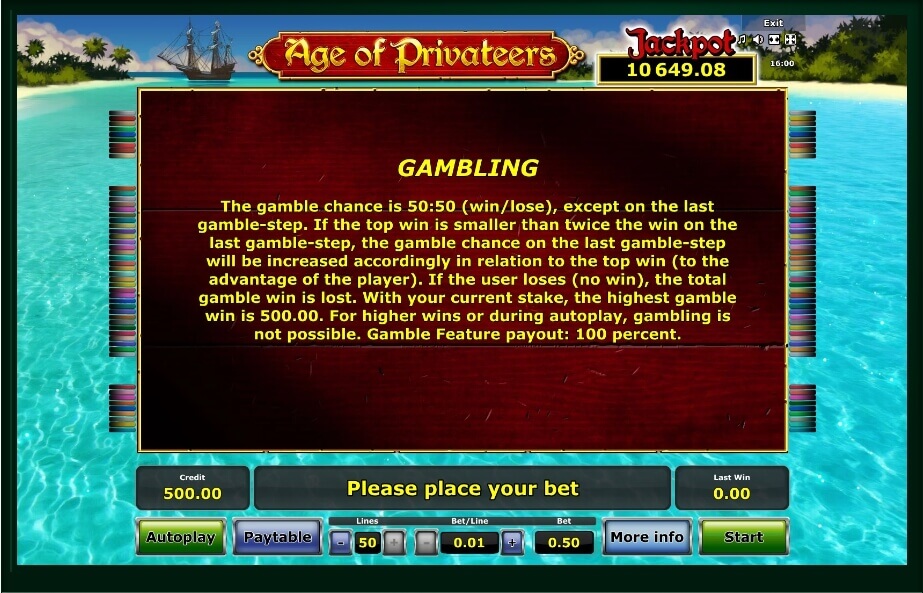 The graphic designers have tried to convey the whole atmosphere with the help of the color palette and the funny story. Age of Privateers will raise the mood and also help to escape from thereal-world problems. In addition, you can use additional options and rounds that will give you many different prizes.