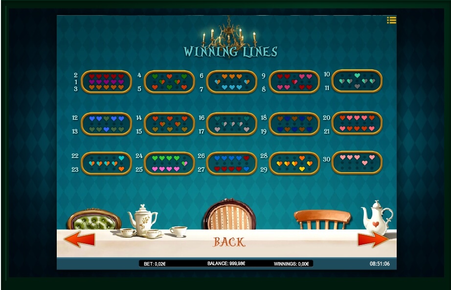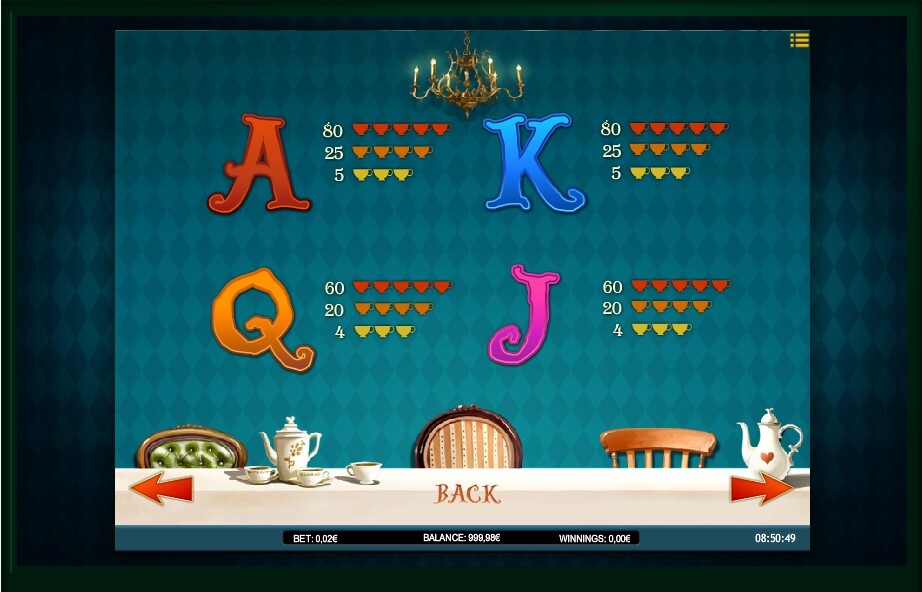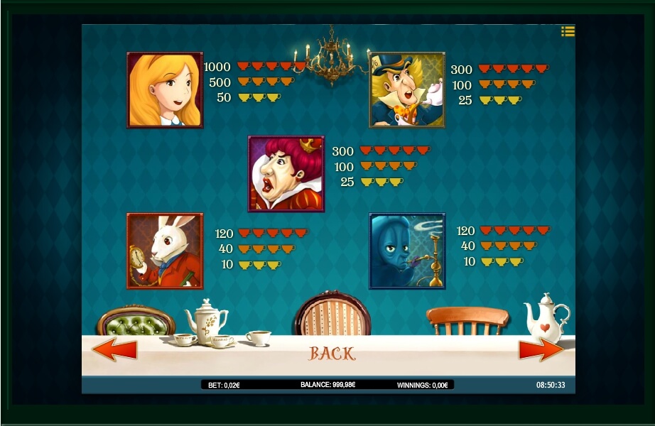 Just like in case of all other games you can find on the internet – you can’t enter the Wonderland without some customization done to your account. Just take a minute and you will be ready to do some things that you have never done. Look at the panel down the gaming reel. It contains all you need to manage the amount of money you are willing to put at stake.