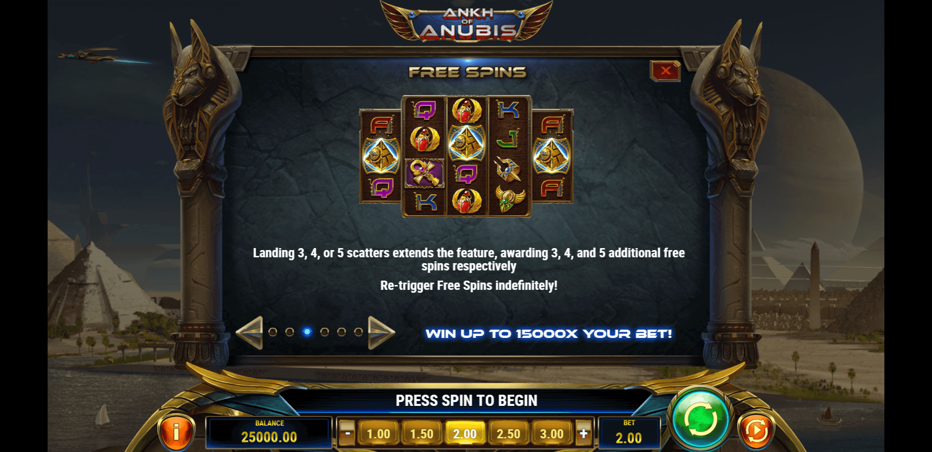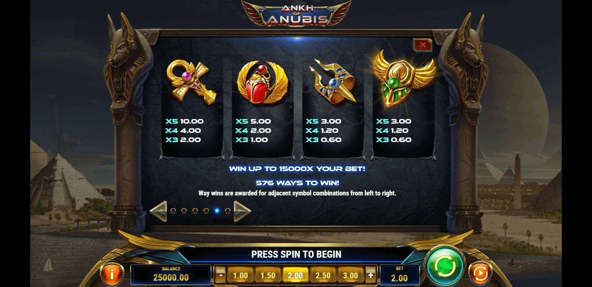 My first impression of Ankh of Anubis slot is that it trades the usual sand-and-scroll setup for metallic pyramids and glowing scarabs. Visually, it’s slick, maybe even underrated. The soundtrack’s got that space-mystery pulse, and the animations feel crisp. It’s not cinematic like Legacy of Dead slot, but it doesn’t try to be. It’s weirder, bolder, and more ideal to play for fun because of it.