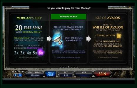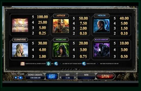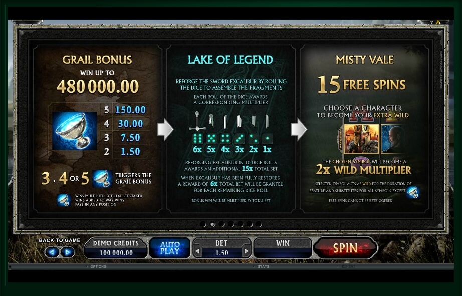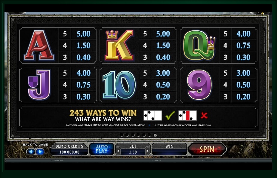 Another most valuable icon is the King Arthur, along with Merlin, Guinevere, Morgan and Black Knight. Other game symbols are 10, 9, Q, K, J and A. The major wins with this game develop through bonus options, with the 243 techniques system providing you with wins.