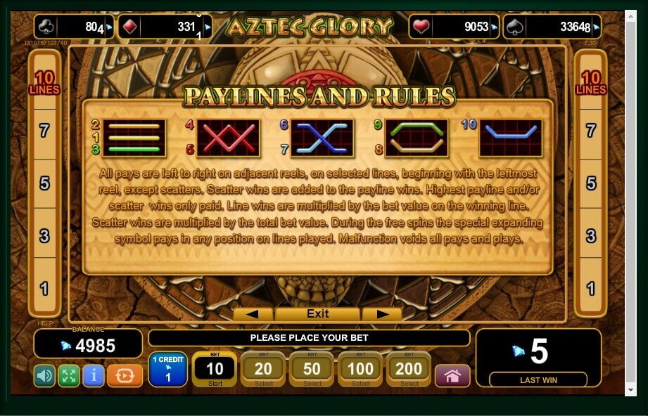 You should not register or download the game. It will make the process of the game easier for people. It seems that everyone will appreciate this possibility to save your time. So, there is no downloading and no registration in the game Aztec Glory.