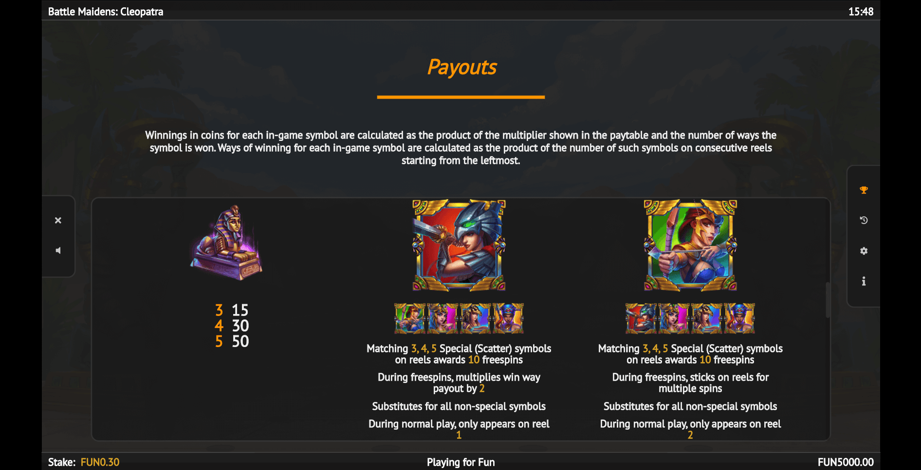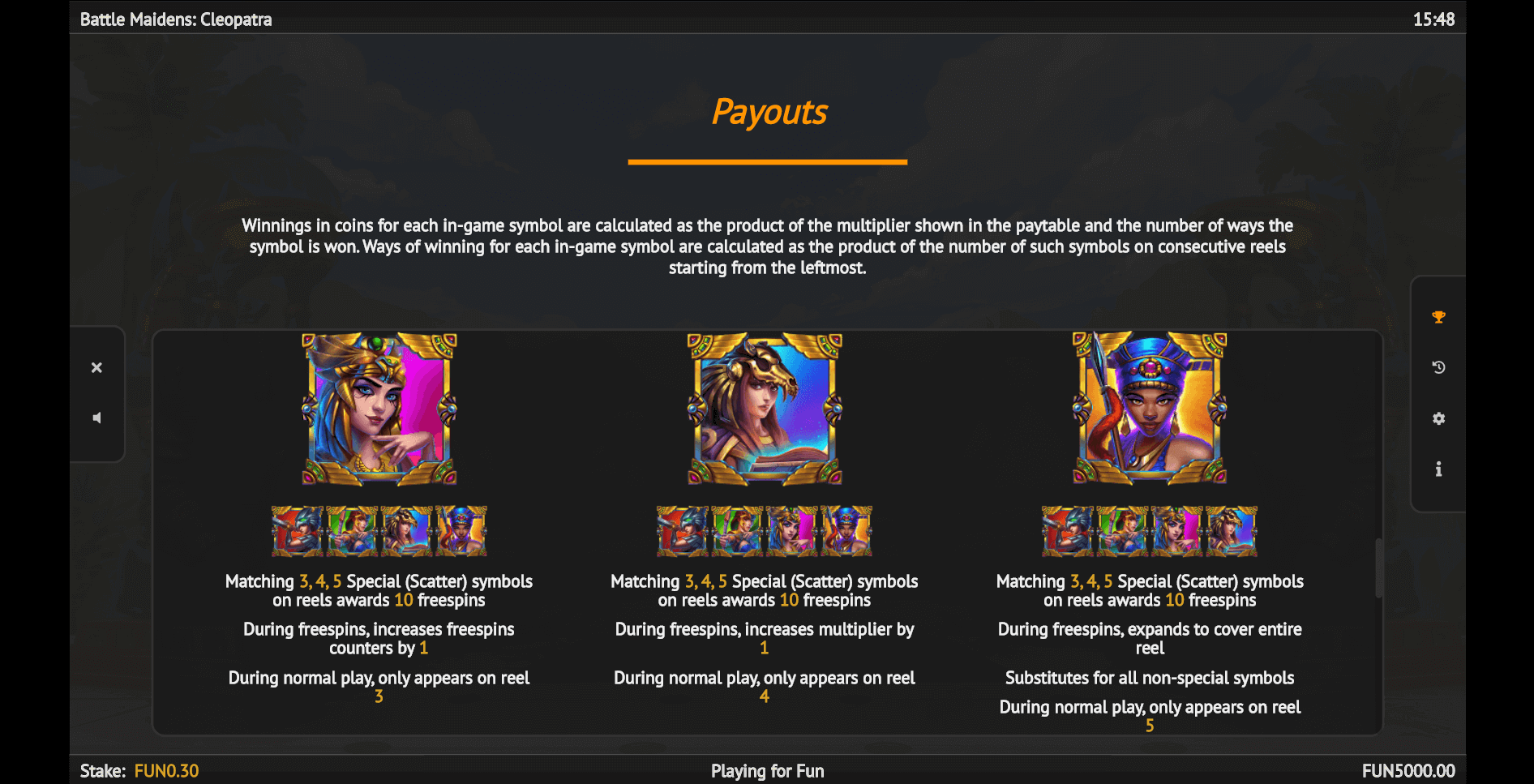 Battle Maidens Cleopatra Slot Game Info & Features