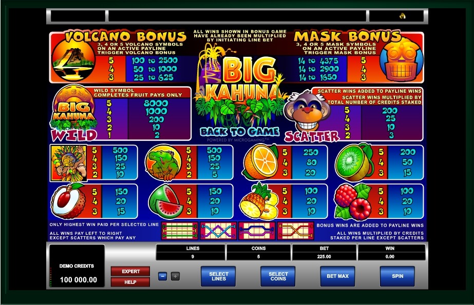 The gameplay represents a 9-payonline slot that contains additional symbols: the Mask, the Volcano, the Monkey and the others. First of all, before you start decide and modify the number of paylines with the help “Select lines” and “Select coins”.