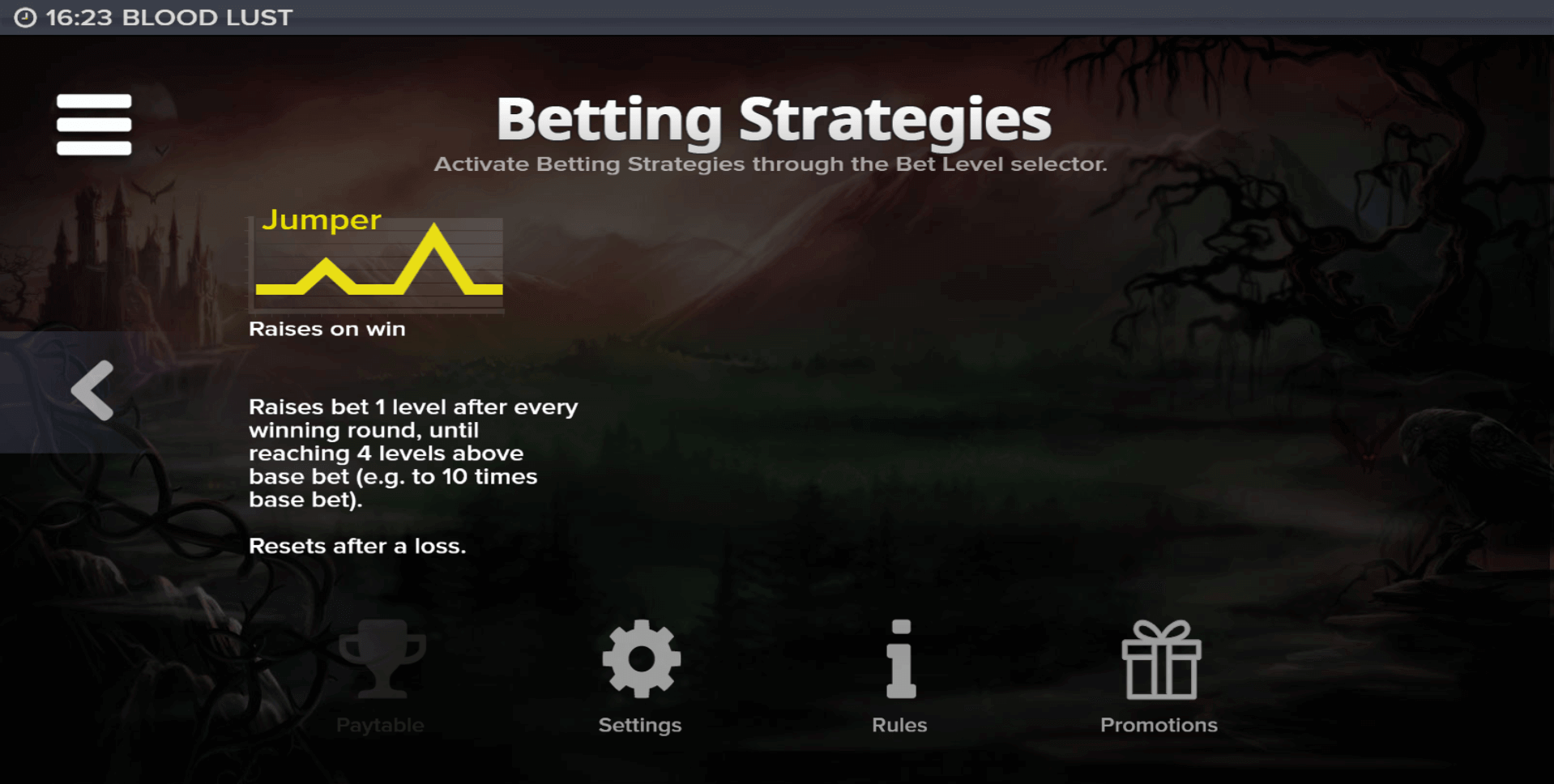 Bonus Game. Another bonus symbol in Blood Lust is the vial of blood. Three such symbols trigger a free spins round, with the number of spins determined randomly — from 3 to 15. During the round, all vampire symbols fill special meters, charging the mystical creatures with power. Once one of them is fully charged, all of its corresponding symbols on the reels transform into Dracula — the highest-paying icon. The more Draculas appear, the higher the winning potential for the remaining spins. And to give the player more chances to enjoy this feature, each filled meter awards one additional spin.