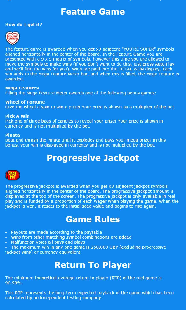 The “Return to Player” index is over ninety-six percent, which means that the player will get back all the money by playing for a long period of time on regular basis. Don’t forget about the biggest prize for the project – 250,000 coins. You will end up getting it by playing smart.