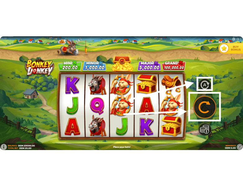 To play Bonkey Donkey for fun, players can launch the demo mode right here on this page. This slot machine is available with no registration and no download, letting you try it out using virtual credits. If you enjoy the game and want real winnings, we recommend heading to an online casino — you’ll find a list of the best options on our site.