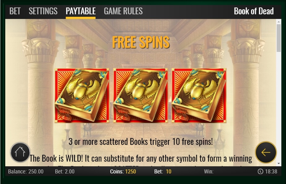 Dropping 3 or more pictures of books launches an additional prize option with free spins. At the moment of free spins, great luck entails special scatter characters. Because of the scatter at this stage of the game, huge prize may appear on the gamer’s balance. This sign can easily expand to the entire drum. Any gambling character can be assigned to this role. When a bonus rotation goes in, the player may become the owner of 250 000 bets. 10 free spins are prolonged if 3 or more images of books fall again in a time of free spins.