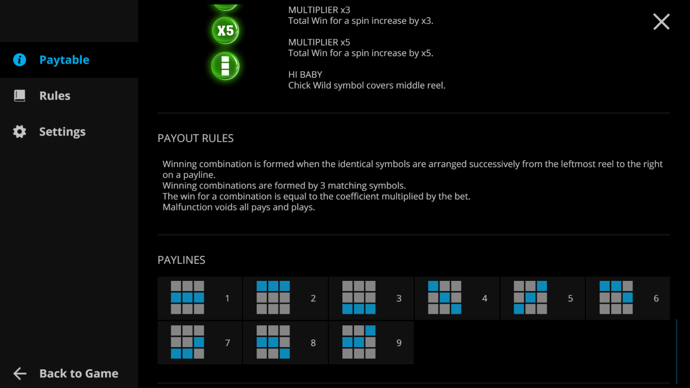 Hi Baby — expands a Wild symbol on the central reel, creating a full Wild Reel.