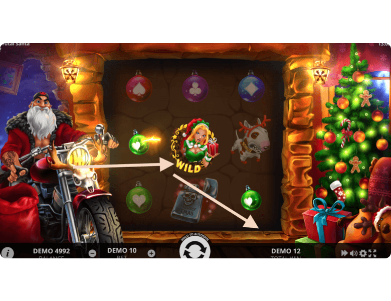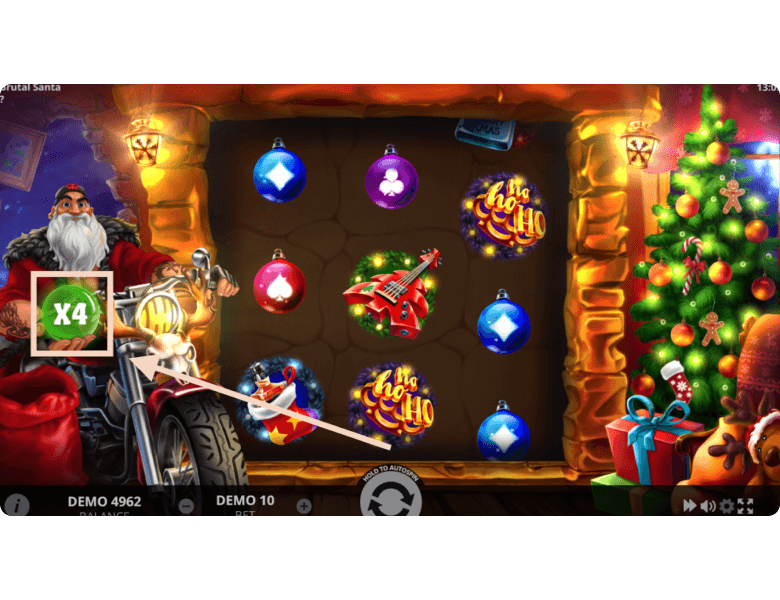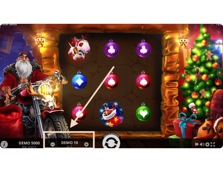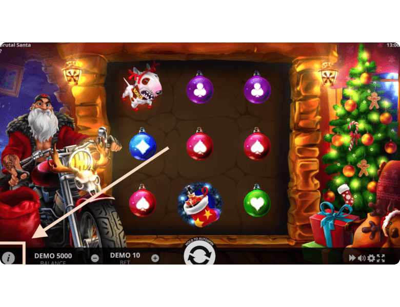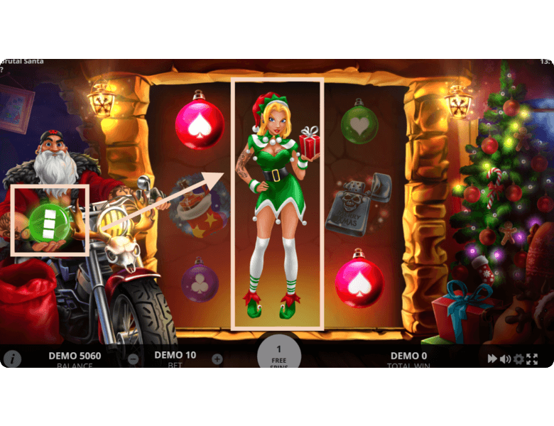 Players can launch Brutal Santa on our site or at any real money online casino. We offer a demo mode with no registration and no download, making it a great way to test all the features for fun without any real risk. The gameplay mechanics are quite simple, and we’ll walk you through them below.