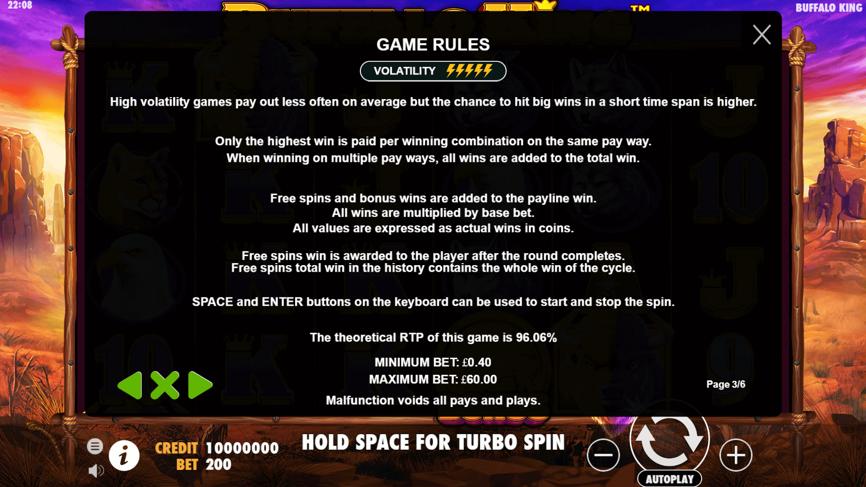The high volatility of Buffalo King feels similar to what I’ve experienced in Buffalo King Megaways, another Pragmatic product but with more winning ways. If attractive graphics are what you are after, you can always try alternatives like Book of Dead or Wolf Gold.