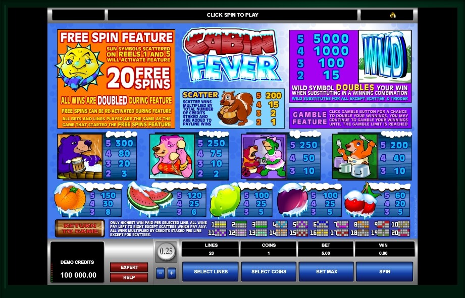 In the unbearable frosty weather in the house of the bears a mess is created, the inhabitants of it are engaged in what is unknown. The family is harassed by boredom: the bear can finally chat on the phone with her friends, the daddy-bear drinks beer, and the children watch TV. The video slot Cabin Fever in question refers to the time when it’s freezing outside, and everyone has to stay at home, often bored at the same time. Although now many will object that the main characters have no Internet and work, or they are just lazy. If you notice, Microgaming gaming machines often unobtrusively and with humor raise similar topics.