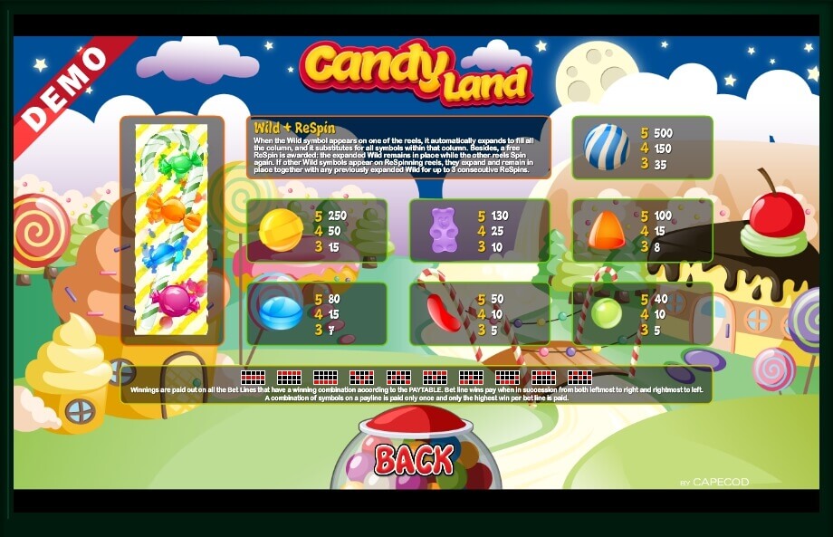 The Candy land online game is a good-developed slot with modern design and the bright playing field. There is only one surprise here – the special Wild symbol, but its role is very important in enlarging credits as well as earning real money.