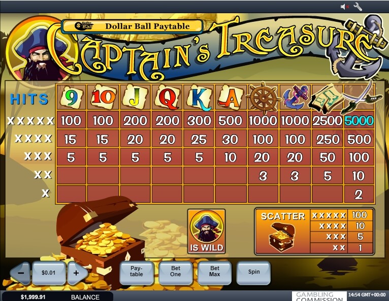 As for the gameplay itself, Captain’s Treasure is a good fast-paced slot with all the things required for a long and engaging game. From the start, there are 5 reels with 3 rows to play around and 20 paylines to make combos from. Along with that, there are score multipliers, wild symbols and free spins that make the overall gameplay even more involving and captivating.