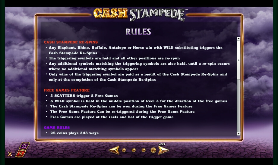 Cash Stampede video slot is a mobile slot with 5 reels and 243 ways to win in gambling. Multiplayer options: 8-16/1x, re-spin, free spins, big wins. The modern video game “Cash Stampede” offers real money to serious gamers. Optimization requirements: