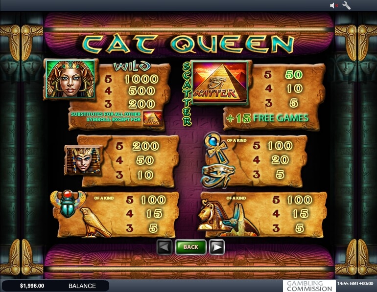 Cat Queen casino game is the project, that was created specifically for those players, who like to watch movies with action sequences and historical plot. It doesn’t mean the regular gamer won’t enjoy it. Developers from Playtech Studio did an amazing job by creating their own story with interesting characters and mysterious curse. Game designers have drawn every slot from scratch. That’s why you can admit so many details in a single picture. Even the background image helps to create the perfect atmosphere for the adventure.