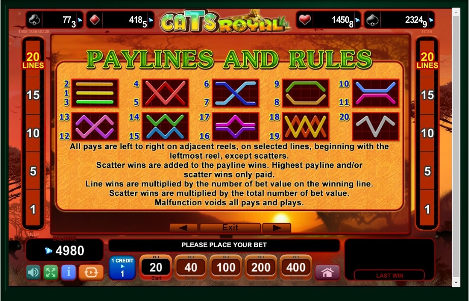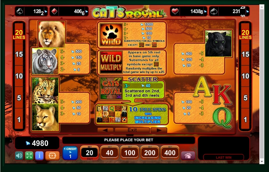 The Cats Royal emulator from the Euro Games Technology manufacturer gives players a unique chance to go on a safari in wild Africa without leaving their home. It is an excellent opportunity to get to know the flora and fauna of this region and make some money.