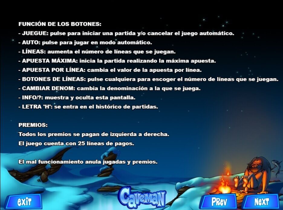 Each symbol has its value. On both sides of the reels, there are numerical values that correspond to all the lines. All the necessary keys can be found at the bottom of the screen. The primitive world has always lived by its own laws and rules that you need to study. The theoretical section is opened with the “i” key.
