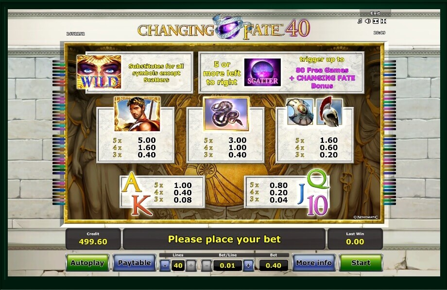 The plot of this story is dedicated to the great civilization that left its traces in the history of the world. “Changing Fate 40” will help to return to the past and meet with great historical figures. The video slot has thematic graphics and additional effects.