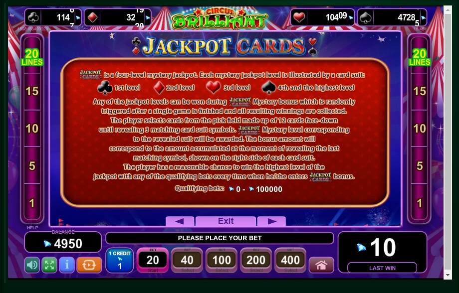 Circus performers demonstrate strength, dexterity and courage inaccessible to an ordinary spectator. Circus Brilliant is a great chance to improve your well-being by taking part in an exciting and colourful game. In addition to positive emotions, you will be pleasantly surprised by its generous bonuses, despite an absence of a thematic bonus round.