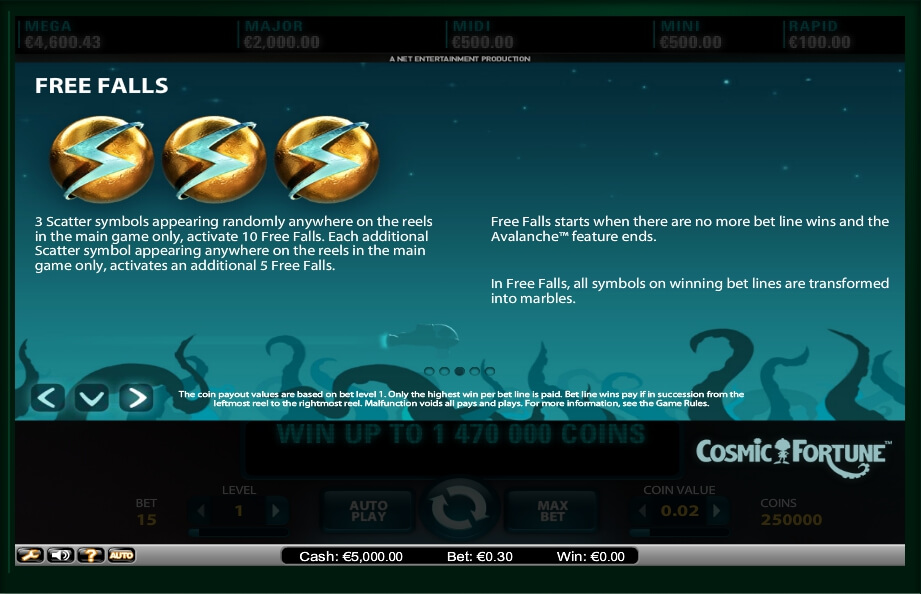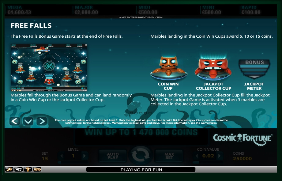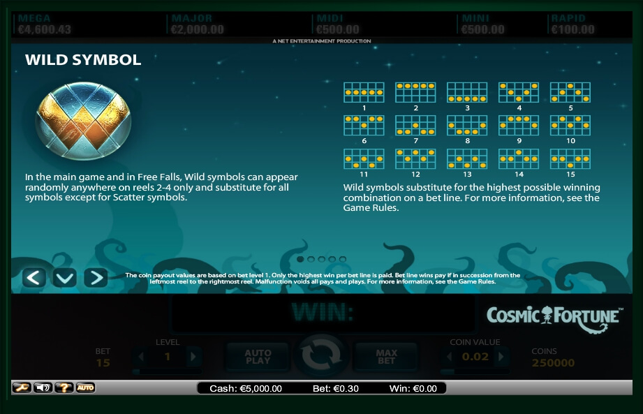 Besides, to launch the Cosmic Fortune online, the gamer don’t need to pay something. Developers added free trial version for those players, who have never played such games before. It contains all basic aspects of the original mode.