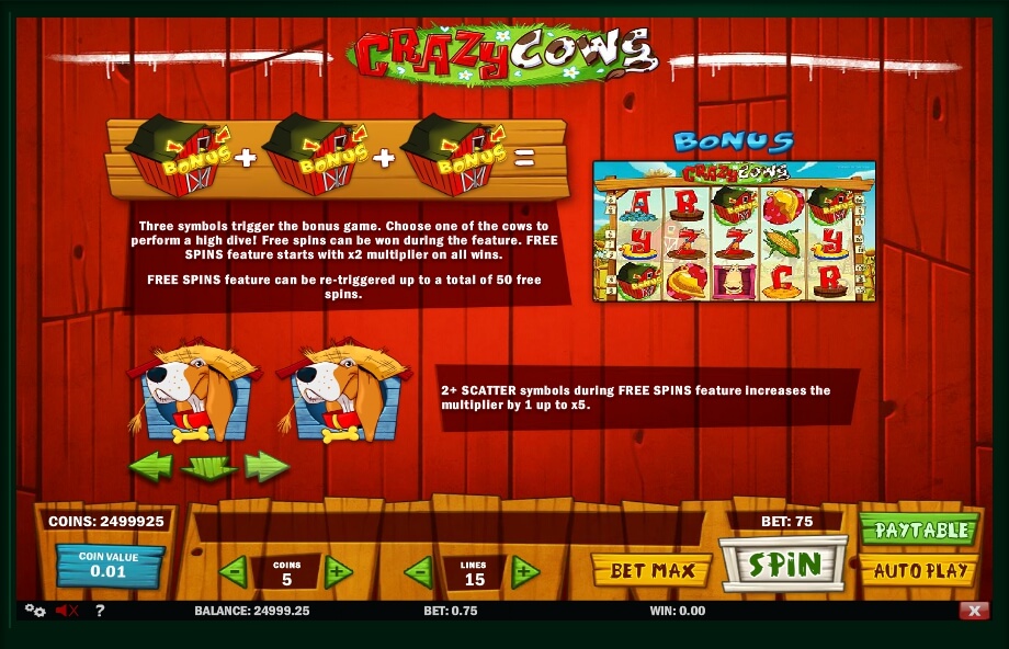 Crazy Cows Slot is a bright slot machine with a cheerful subject. Fans of the Fruit farm online gaming machine definitely will like also this slot close on the subject and the amusing atmosphere of the game process. Cows who live in the cowshed on one of the farms act as its main characters.