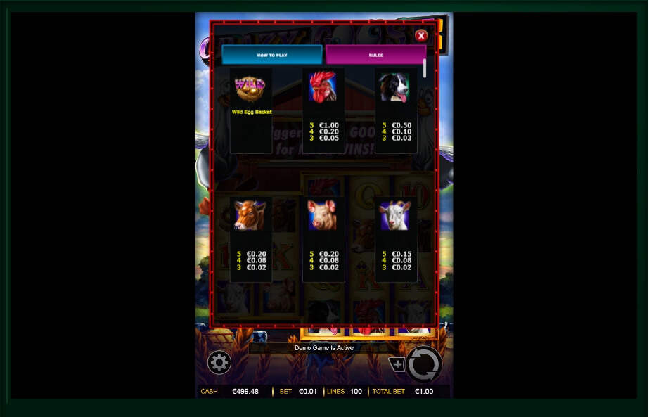 Funny adventures on the farm are waiting for all players of the slot that can offer them all the characteristics for a fascinating journey. Crazy Goose is guaranteed to give the player a lot of positive emotions. Quality graphics and user-friendly interface are complemented by special effects that make this product unique!