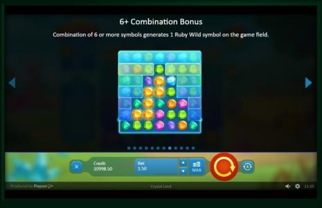 – 6+ Combination Bonus. In this case, an additional Ruby Wild appears on the screen.