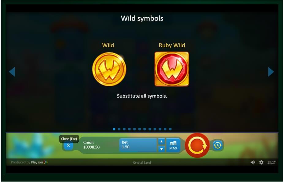 The game was combined with amazing visual effects and musical accompaniment. Developers have executed the interface of this video slot in bright colors that attract all attention. To learn how the crystals are formed, the player needs to visit the theoretical section that opens with the “i” key. The first page describes two jokers that take part in the game.