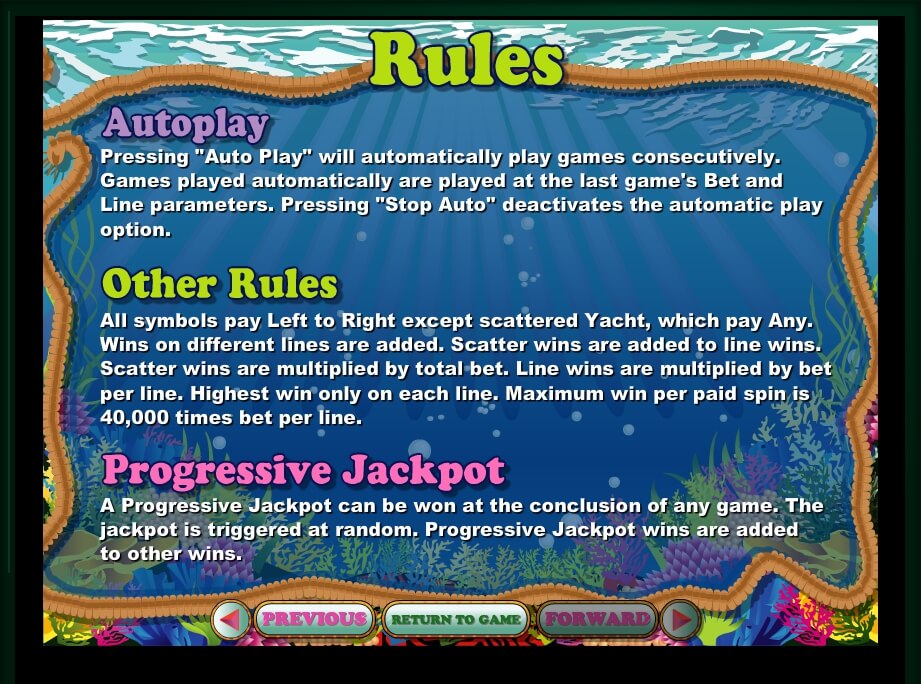 In this underwater Las Vegas, the gamer ought not to download his scuba and register flippers and a mask. The gambler can push Help button, learn all the details of the slot terms and enjoy diving or sailing on the yacht for free.