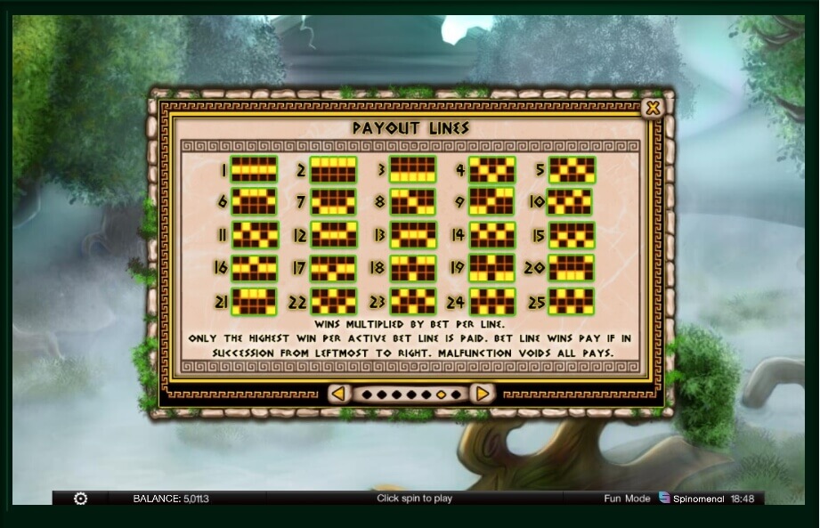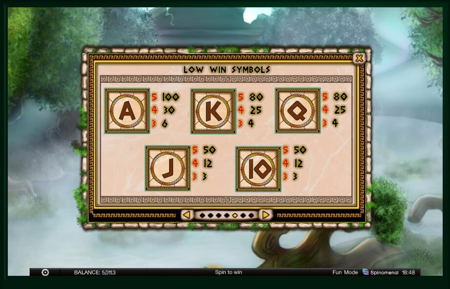 In general, this is a five-reel slot with 25 fixed paylines. You should not be frightened by the fact that you cannot choose the number of pay lines, on the contrary, you need to remember that the more you put, the more you get in the end. You can try to start with minimum rates for each line and see a wide range of opportunities to win not just money, but a real jackpot! By the way, here it is 100,000 coins! The gods in their time could only dream of such a sum!