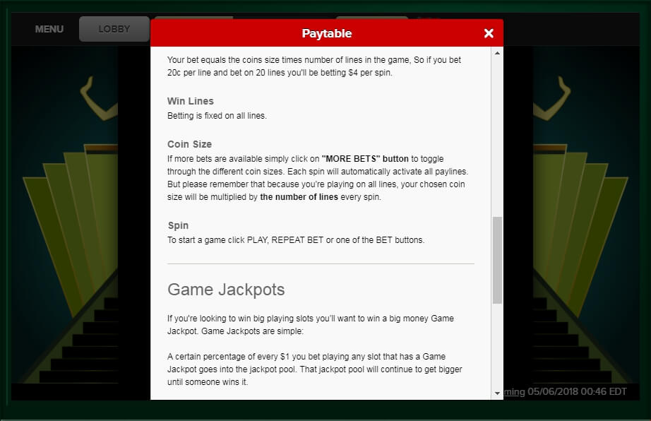 This is a simple video slot game with not that wide betting range. As minimal, players will have to bet one cent per one line. Maximal available bet is five dollars per line. Despite the fact there is not that wide choice, this is still an interesting and interactive video slot game that anyone can play easily. There are two modes of the game available on the websites of online casinos.