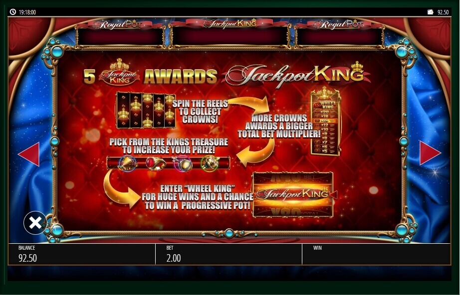 There is not the diversity of bonuses, free spins or something like different wild cards, but we have something incredible for you. The special function, which is called “Jackpot of the King”, will give you the possibility to increase bets a lot. It is the real opportunity to change the situation in 1 second. It does not matter if you win or not, you can trigger this function.
