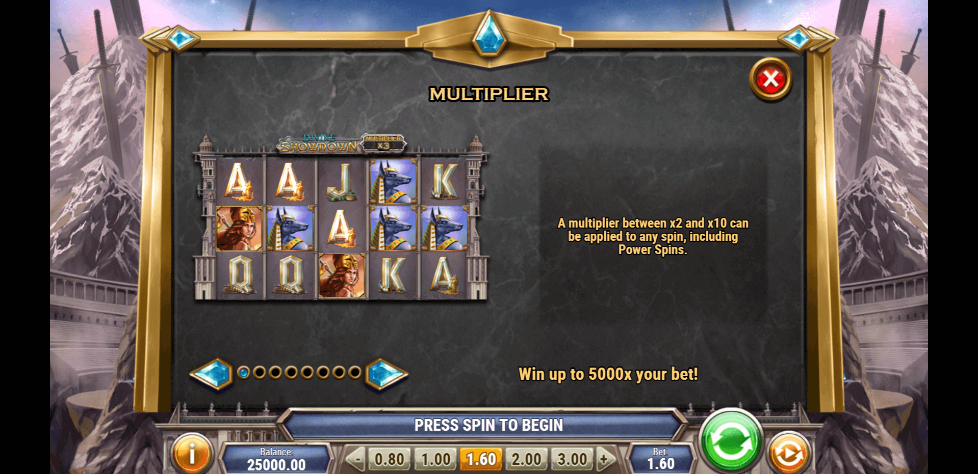 Among the features you’ll find in Divine Showdown are the Scatter, Wild, and its enhanced version, the Expanding Wild. But the best elements are the god bonuses and the Multiplier Reel at the top of the screen. This reel can award values from x2 to x10 on any spin, multiplying your wins.