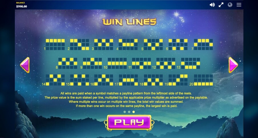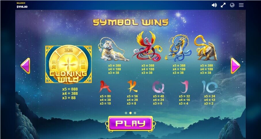 Here everything is of the highest quality. The design of the slot is not just a picture, but a full-fledged action, where you are a direct participant. All the details accurately convey the signs of the eastern horoscope. The composition is represented by a set of 5 reels and 20 lines. It is characterized by a rich animation, inherent in both winning combinations and static elements that perform only an aesthetic role.