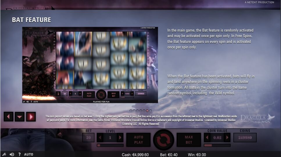 And even if this character has managed to tire you with the presence in a set of other games, believe, having tested the Dracula Slot, you will be satisfied with this spectacular, bright and unforgettable game! You, by all means, have to try the Dracula slot, as it incredibly conquers the hearts with not only passion of process, but also, certainly, will make you love it due to the quality of illustration and functionality!