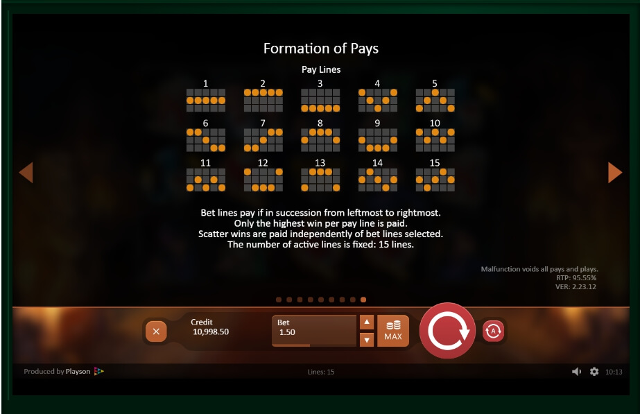 It is needed for the player to learn the control panel of the machine before starting the game process. First, the user should open the PAYTABLE tab and familiarize with basic rules of game, payout table and other tabs. Next, it is necessary to select a bet using the BET or MAX BET function, and also adjust the number of active lines by using the LINES button.