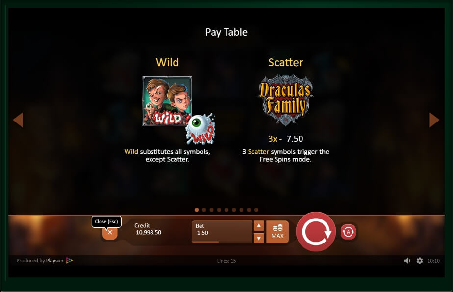 Scatter in the machine is the game logo that appears in any cells of the playing field (a feature of this symbol). It activates free spins and increases the payout three times as compared to the bet. Well, the third special symbol is a bonus, depicted in the form of the couple Dracula.