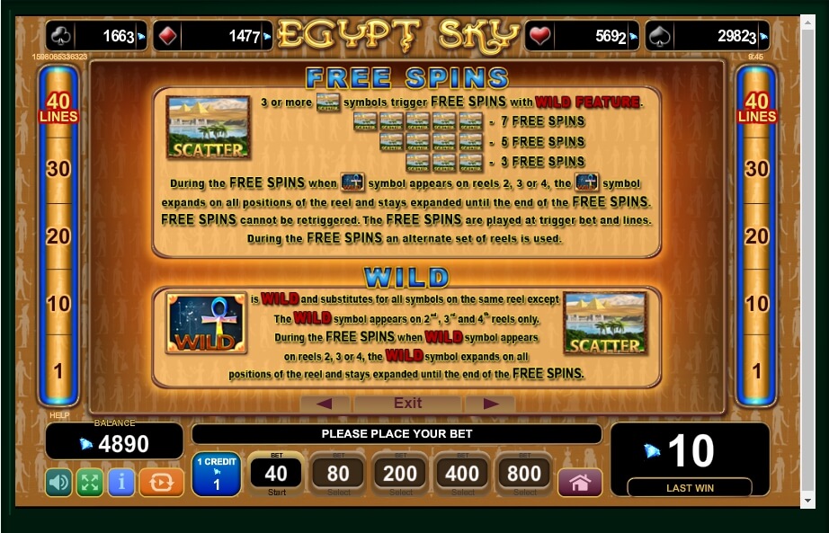 Egypt Sky Slot Game Info & Features