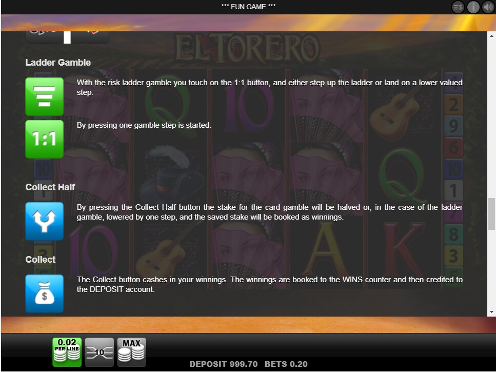 El Torero casino slot is quite a colorful and very interesting game with all the most common functions, a bright design, and a convenient control panel. The presence of special characters, bonus levels and interesting turns in the game process make this slot pleasant not only for beginners but also for experienced players. And try your hand by playing El Torero slot for real money in any online casino with a partnership license from Merkur Gaming.