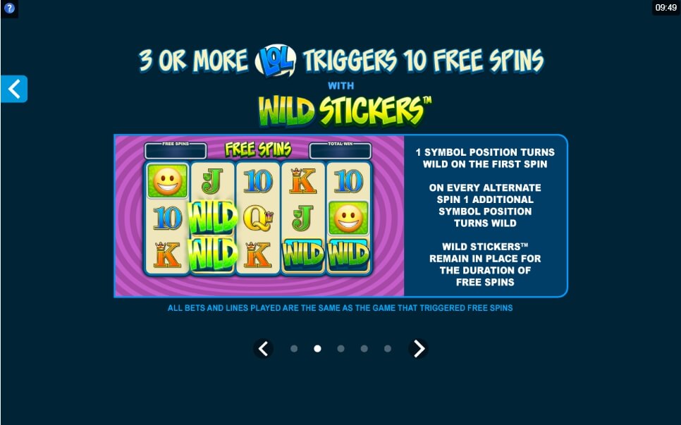 The unlocking of Free Spins can be real only if you trigger not less than 3 blue LOLs anywhere on the activated reels. Why? Because LOL is the magic Scatter. If you compile this rule, you will get 10 free spins.