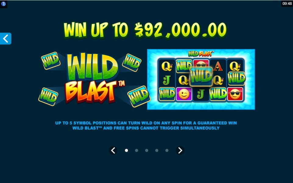 Wild Blast can be activated only randomly and only during the regular slot’s game. Up to five symbol positions will be transformed. (A note: Except Wild and Scatter.)