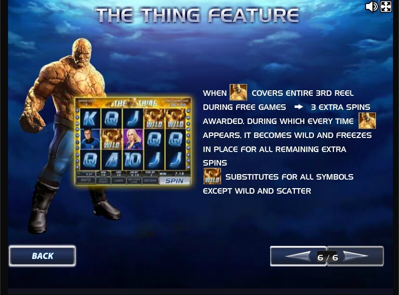 What Marvel game could be, without extra ordinal abilities of their characters? The Fantastic Four 50 lines gambling gives the player an opportunity to use superpowers of the Sue Storm to become invisible and spin the reel for free four times. It will increase your bankroll in the numerous way.