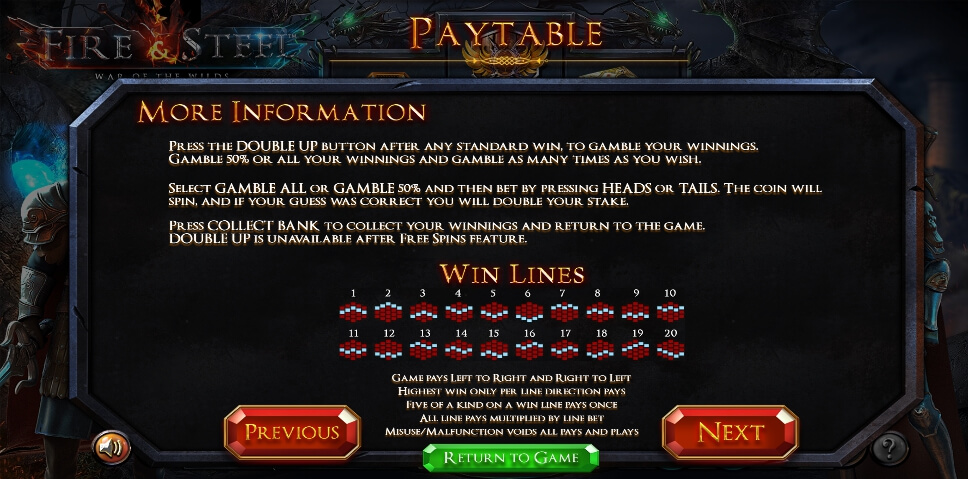 Fire & Steel free slot symbols description