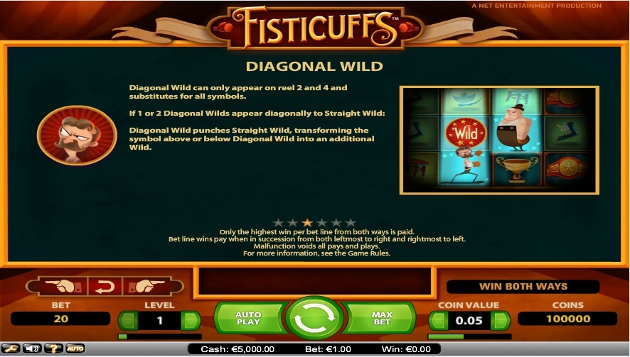 The Fisticuffs slot machine is an unusual game from Net Entertainment, which is able to surprise everyone. The slot has a pleasing set of exclusively themed characters, among which there are as many as 3 wilds with very untypical characteristics. The function “Boxing”, which consists in drawing the wrestling round between the two main characters, is guaranteed to give the user the conditions for obtaining profitable prizes. And you have an opportunity to get real money!