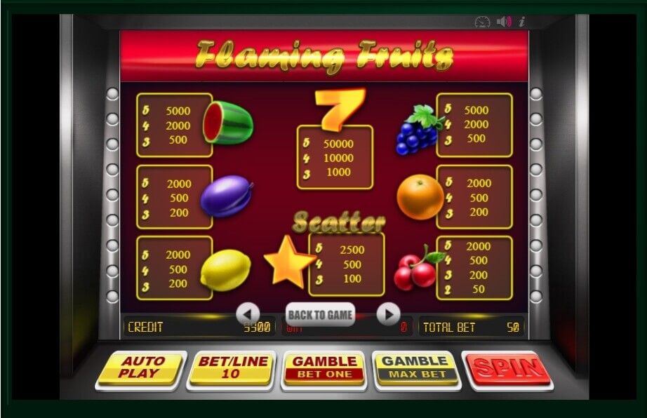 Flaming Fruits online slot is delivered with 5 reels, 3 rows and 5 fixed lines of payment. It is an online remark of the gaming machine which brings you pleasure and big prizes.