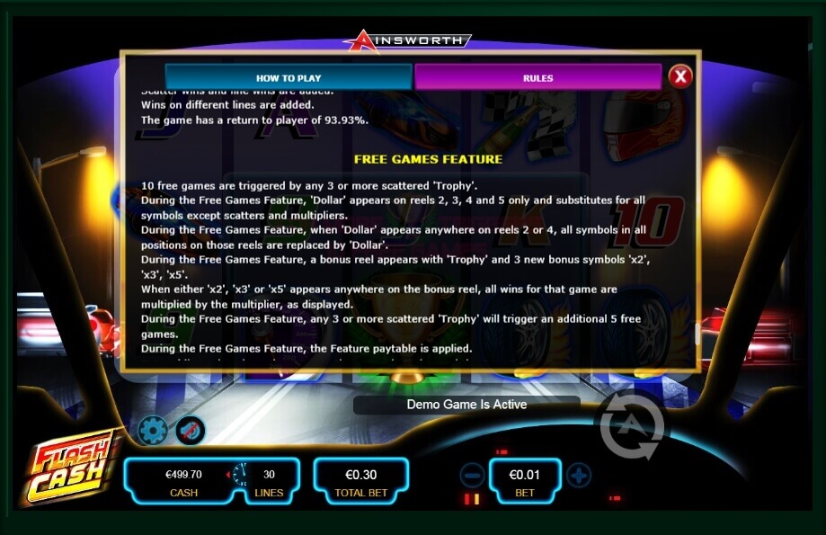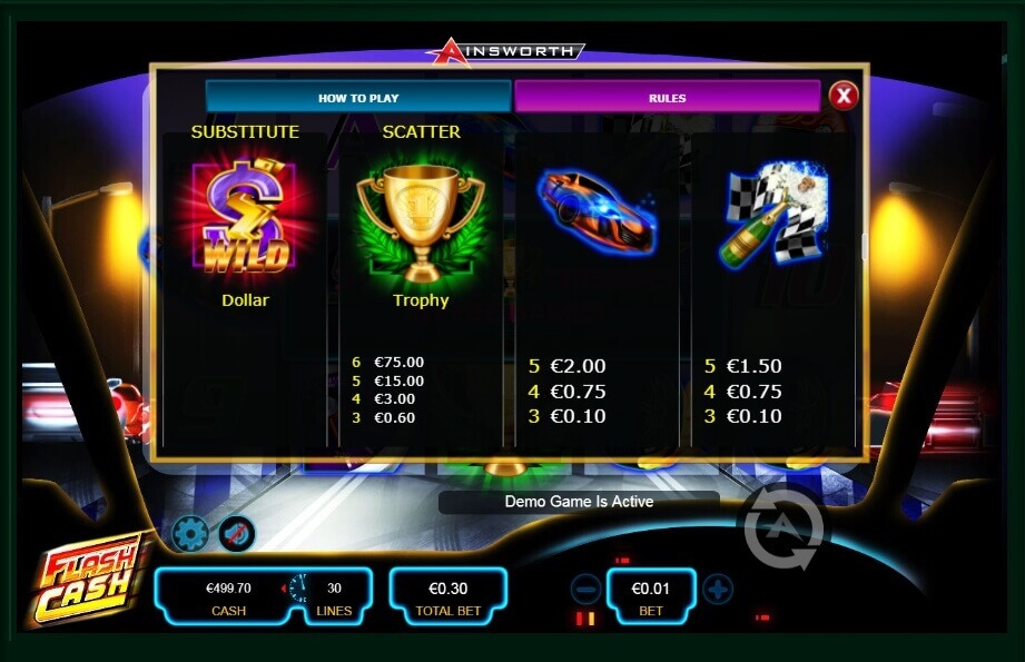 To sum up, we can say that this is an excellent choice of an exciting and dynamic game with bright graphics and generous bonuses. After the game is launched, you will find yourself in a racing car that is ready to win. You just need to follow simple rules and eliminate competitors. Flash Cash is also available in a demo mode, during which you do not need to spend money. This race will be dangerous and profitable!