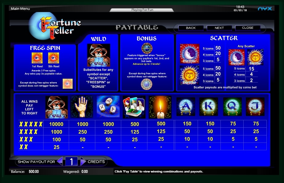 Whether you have played slot games online before or not, Fortune Teller and its rules will not seem too complicated for you. Just place a bet with a help of corresponding buttons (changing the size and number of coins, paylines and other parameters) or bet the maximum of what is allowed by pressing the AutoPlay button.
