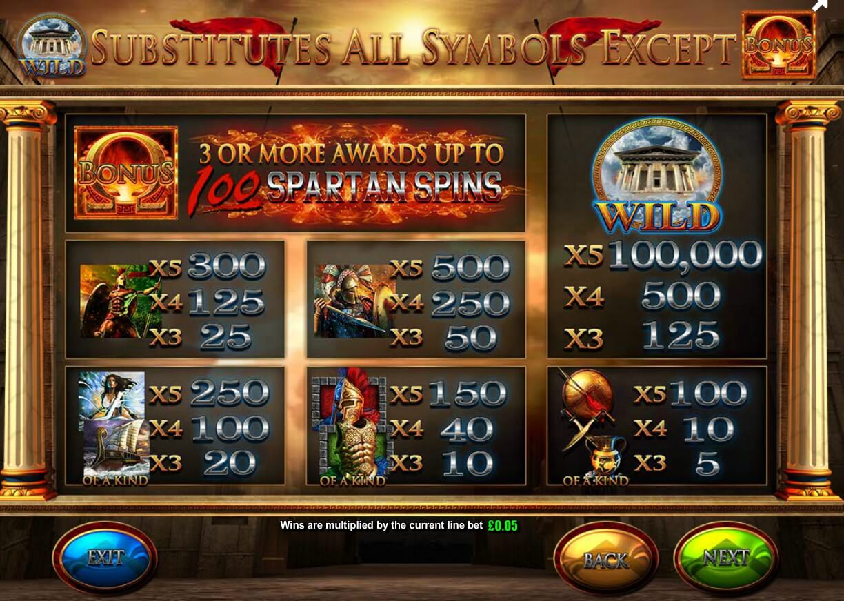 In short, Fortunes of Sparta is a fascinating slot game on five reels with 20 lines and a stunning graphics depicting the heroes of the famous film. In addition, the game will be accompanied by a bravura music, symbolizing the victory and tuning a player in the right way.