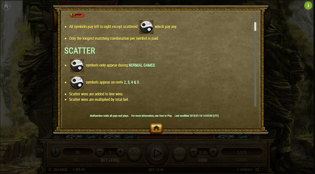 Wild makes chains and also can replace simple images. In any round, additional re-spins with one of the animals may begin. Scatter (yin-yang) appears in all columns, except for the first one. It is used to activate a round of free spins. Besides, you need to catch one of the animal images in order to switch to the additional mode.